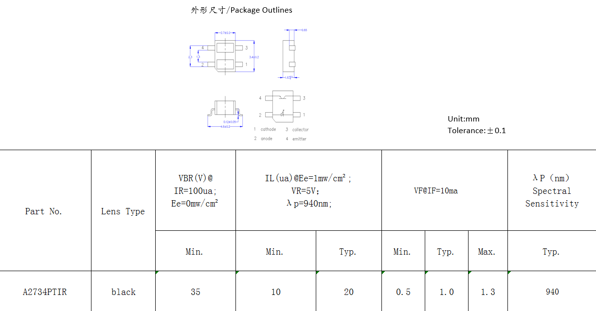 紅外接收特征:紅外輸出功率高,響應(yīng)速度快。應(yīng)用:高速紅外通信,光學(xué)開關(guān),光電傳感器,攝像頭,煙霧傳感器