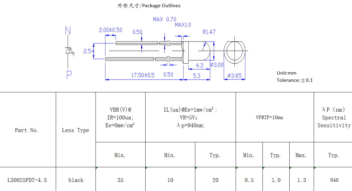 f3紅外接收管。特征:紅外輸出功率高,響應(yīng)速度快。應(yīng)用:高速紅外通信,光學(xué)開關(guān),光電傳感器,攝像頭,煙霧傳感器