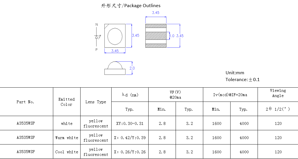 3.5mm(長(zhǎng))*3.5mm(寬)*2.0mm(厚)特征:低光衰,低能耗。應(yīng)用:裝飾照明,家居照明,背光燈,按鍵指示